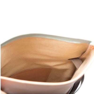 Soft pink leather in one side. Back in light blue leather. Grey elastic. and adjustable straps in Grey Suede. Two inner pockets. Dimensions:  35 x 33 cm.  Adjustable Straps:  70cm – 80cm. With an extra handle strap. REF. MMBPAO. Made in Portugal